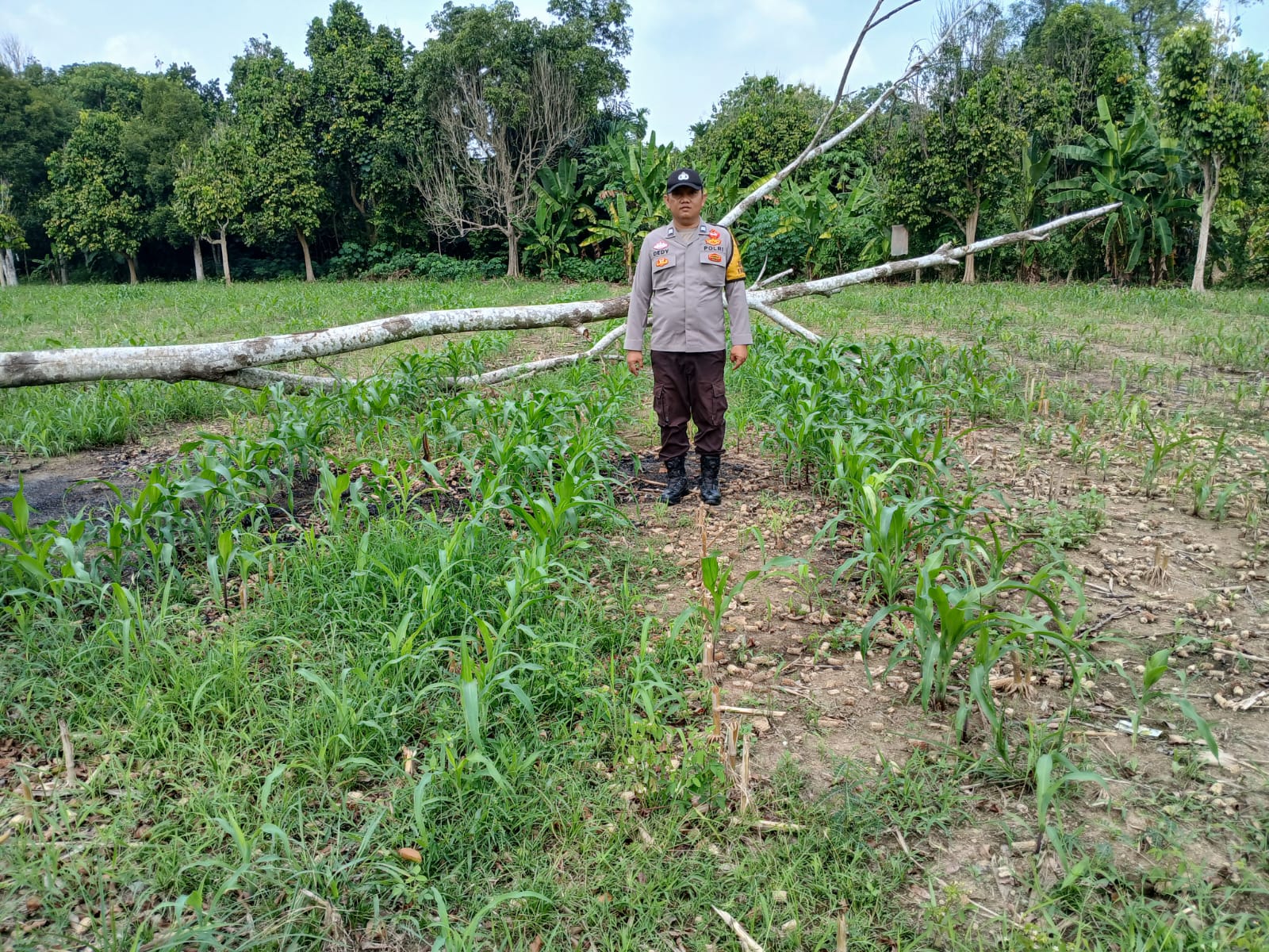 BHABINKAMTIBMAS POLSEK BP PELIUNG BERSAMA ANGGOTA SAHABAT KELOMPOK TANI MELAKUKAN KONTROL PERTUMBUHAN TANAMAN JAGUNG