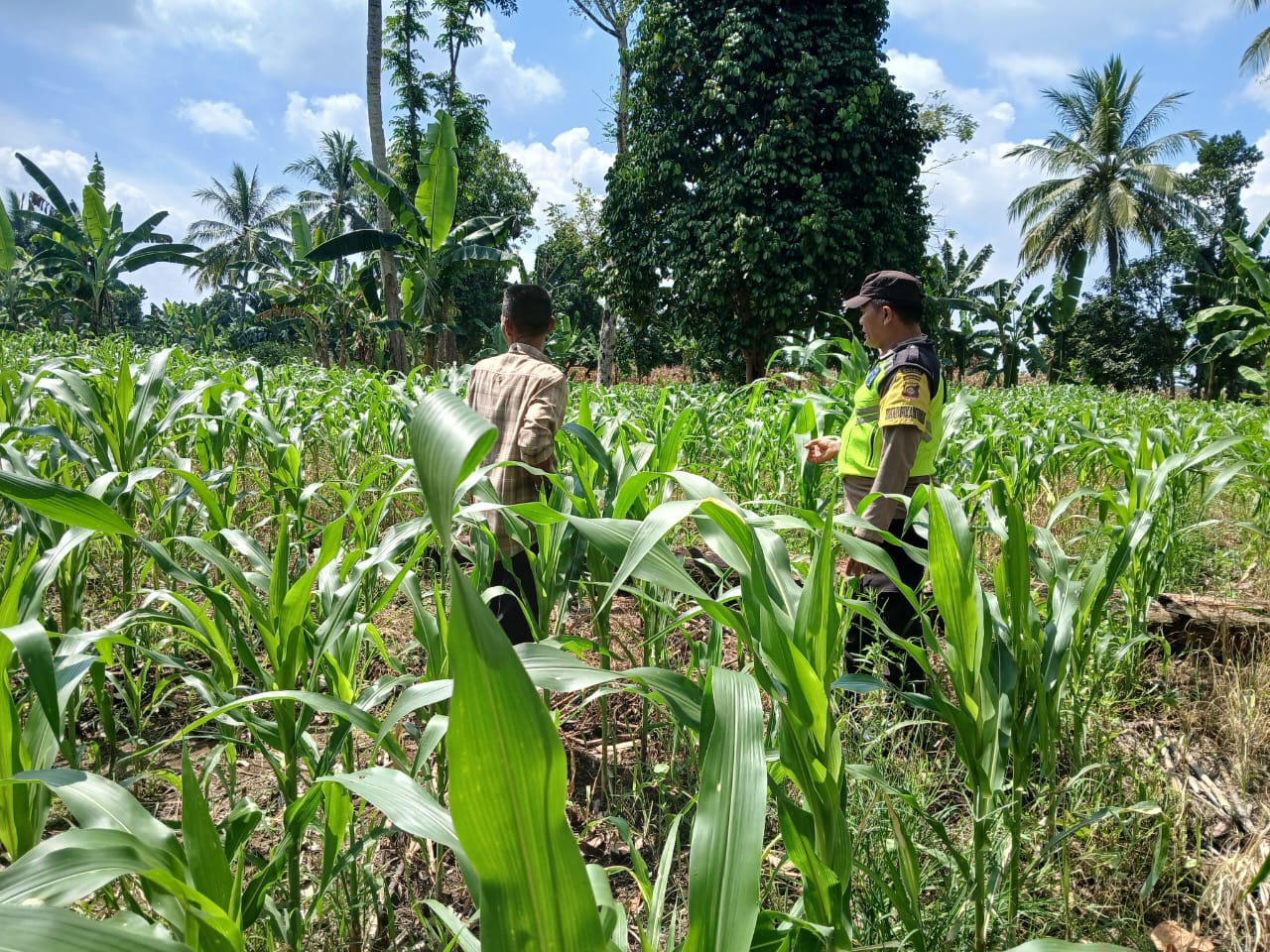 BHABINKAMTIBMAS POLSEK BP PELIUNG BERSAMA ANGGOTA SAHABAT KELOMPOK TANI MELAKUKAN KONTROL PERTUMBUHAN TANAMAN JAGUNG
