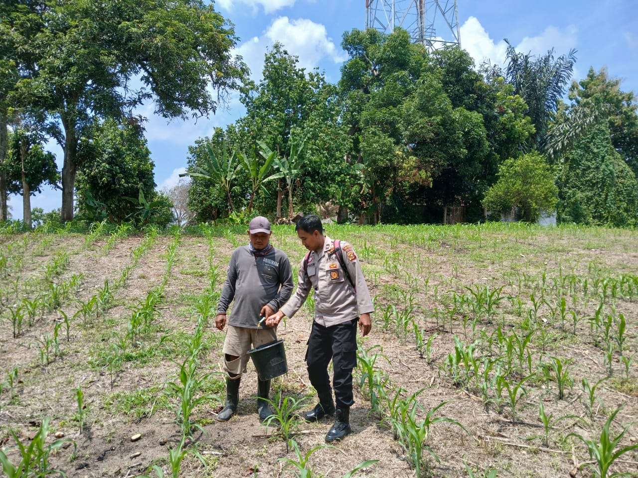 KANIT BIMAS POLSEK BP PELIUNG MELAKUKAN GIAT KONTROL PERKEMBANGAN PERTUMBUHAN TANAMAN JAGUNG