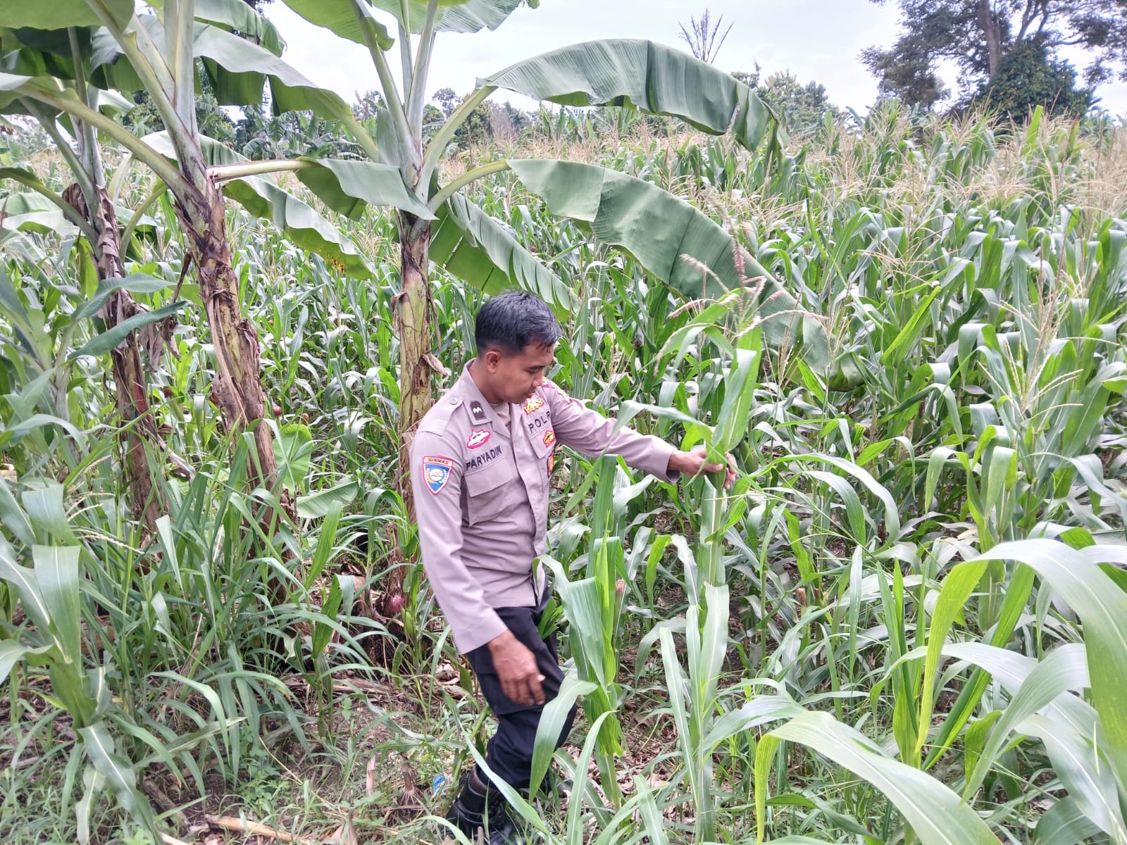 KANIT BIMAS POLSEK BP PELIUNG MELAKUKAN GIAT KONTROL PERKEMBANGAN PERTUMBUHAN TANAMAN JAGUNG