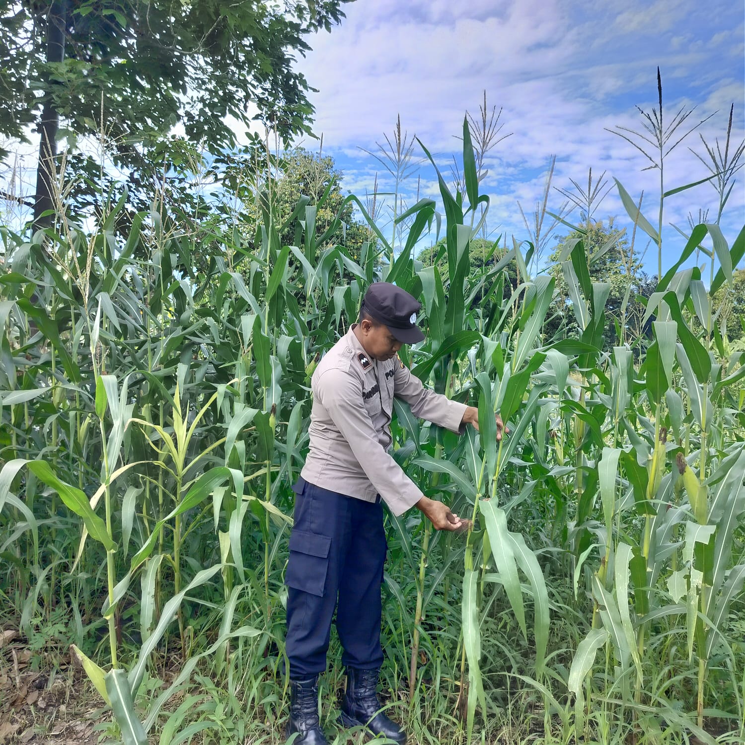 KANIT BIMAS POLSEK BP PELIUNG MELAKUKAN GIAT KONTROL PERKEMBANGAN PERTUMBUHAN TANAMAN JAGUNG