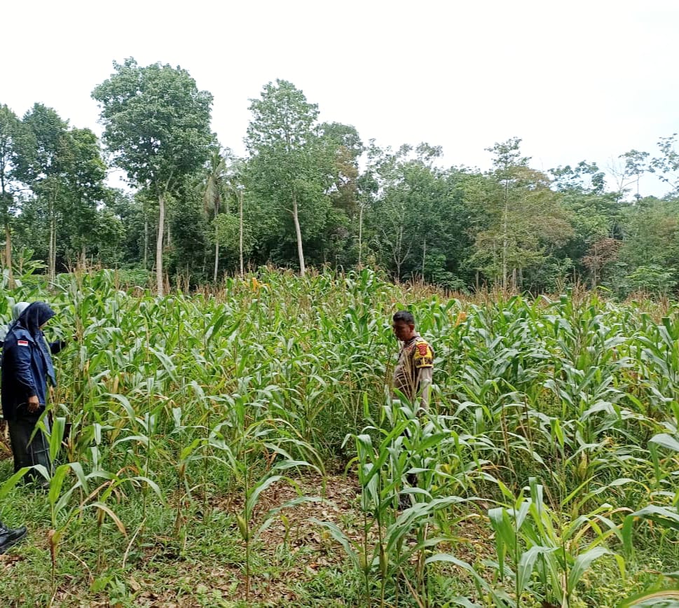 MADANG SUKU II – Dalam upaya mendukung program pemerintah di bidang ketahanan pangan, Kanit Binmas Polsek Madang Suku II, Bripka Subegti Bayu aji melaksanakan kegiatan pengecekan perkembangan pertumbuhan tanaman jagung di lahan binaan milik Bapak MargoAndi (56) yang berlokasi di Desa Karya Makmur Kecamatan Madang Suku II Kabupaten OKU Timur seluas 1 hektar.