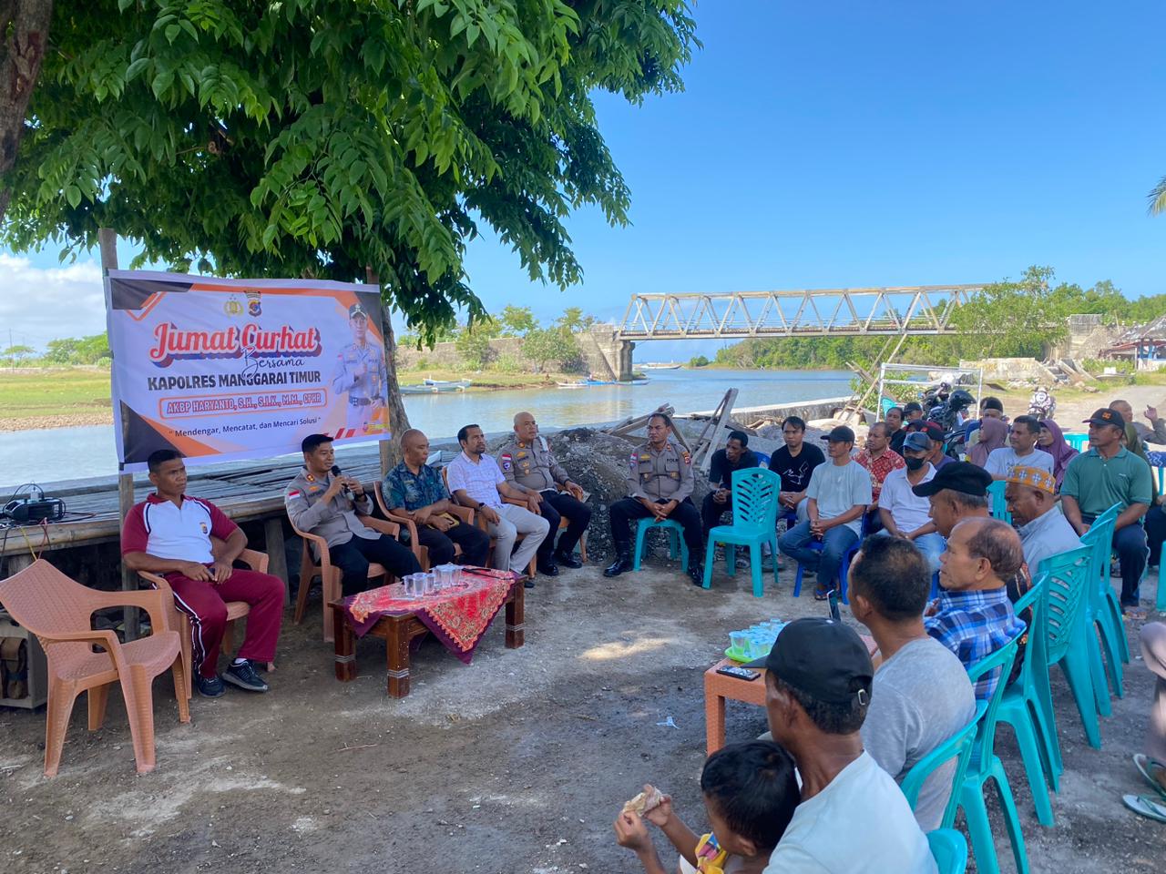 Polres Manggarai Timur kembali melaksanakan kegiatan Jumat Curhat sebagai upaya mendekatkan diri dengan masyarakat serta mendengarkan langsung aspirasi, keluhan, dan masukan dari warga. Kegiatan ini dilaksanakan pada Jumat pagi (17/10/2025) bertempat di Kampung Nggeok, Kelurahan Ranaloba, Kecamatan Borong, Kabupaten Manggarai Timur.