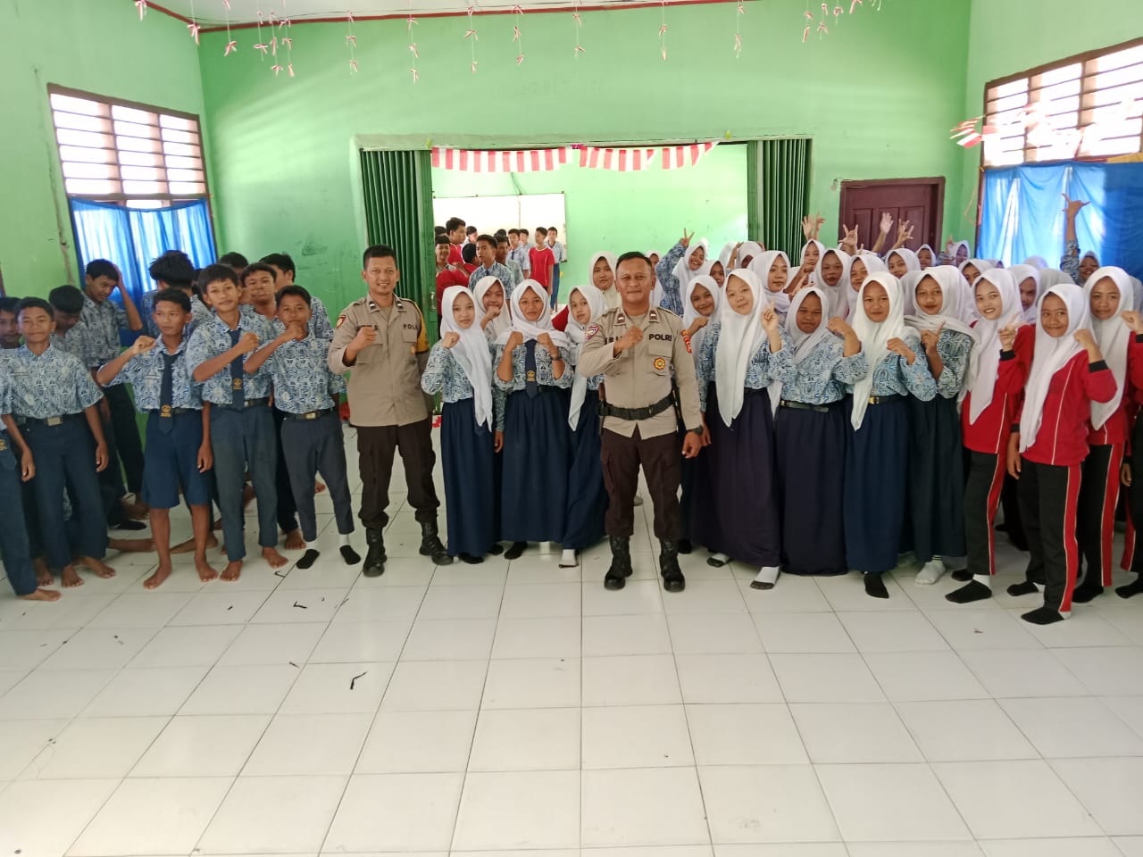Kegiatan Sosialisasi di SMP Negeri 2 Belitang Jaya Kab. OKU Timur, dihadiri oleh Kanit Binmas Polsek Belitang III AIPDA ERIK PURWANDOKO, Kepala Sekolah SMP Negeri 2 Belitang Jaya Hj. SULYANTI, Bhabinkamtibmas Polsek Belitang III AIPDA AHMAD SUHADI, Para Dewan Guru SMP dan Siswa – siswi SMP Negeri 2 Belitang Jaya