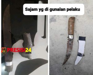 Barang bukti berupa sebilah pisau tajam sepanjang 10 cm, sebilah golok sepanjang 40 cm, serta pakaian pelaku saat kejadian turut diamankan polisi.