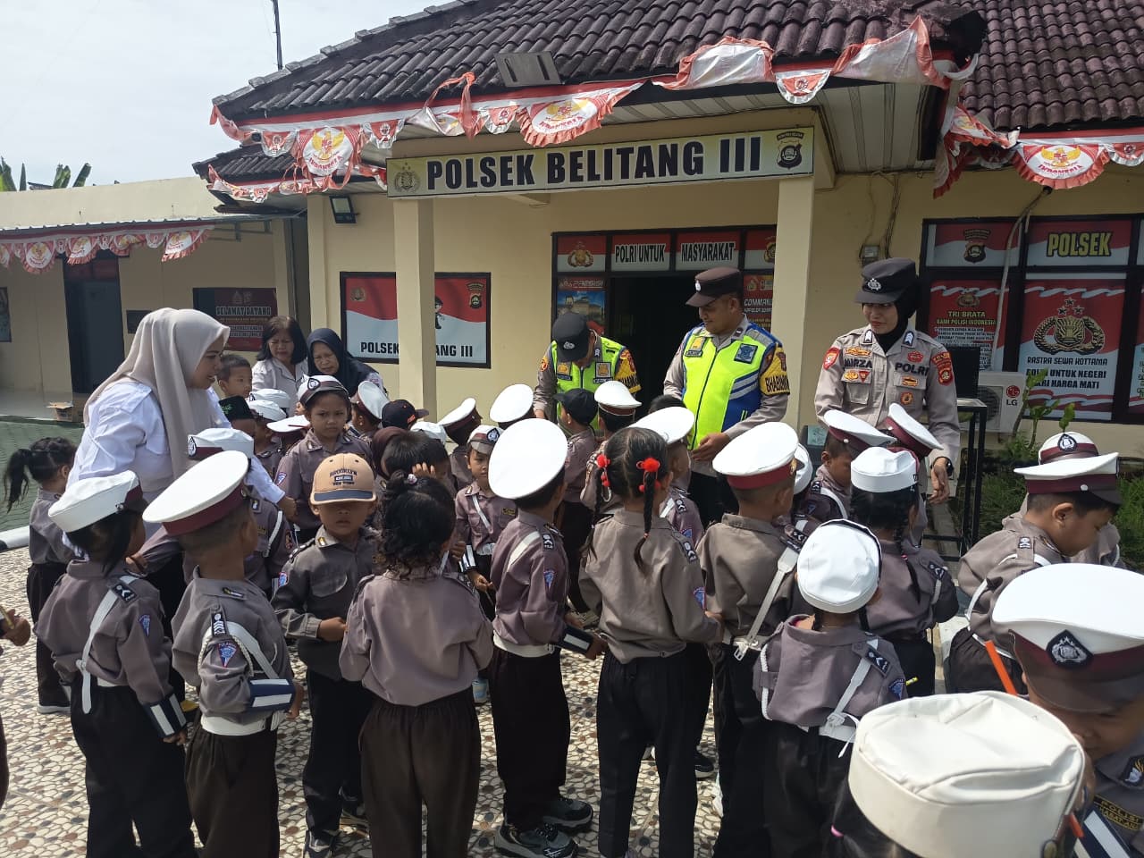 BELITANG III – Polsek Belitang III menerima kunjungan Edukatif Siswa – siswi TK (Taman Kanak-kanak) desa Nusa Bakti Kec. Belitang III Kab. OKU Timur di Mapolsek Belitang III. Rabu (05 November 2025)