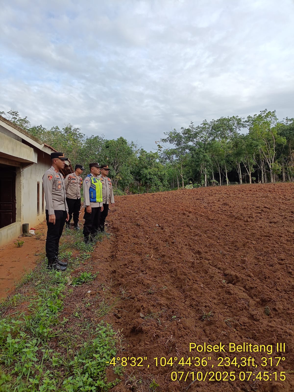 BELITANG III – Kapolsek Belitang III IPTU SAPARIYANTO, SH bersama Personil Polsek Belitang III melaksanakan pengecekan persiapan lahan jagung untuk Program Penanaman Jagung Kuartal IV di Desa Nusa Bakti, Kecamatan Belitang III, Kab. OKU Timur, pada selasa, 07 Oktober 2025, pukul 07.30 WIB.