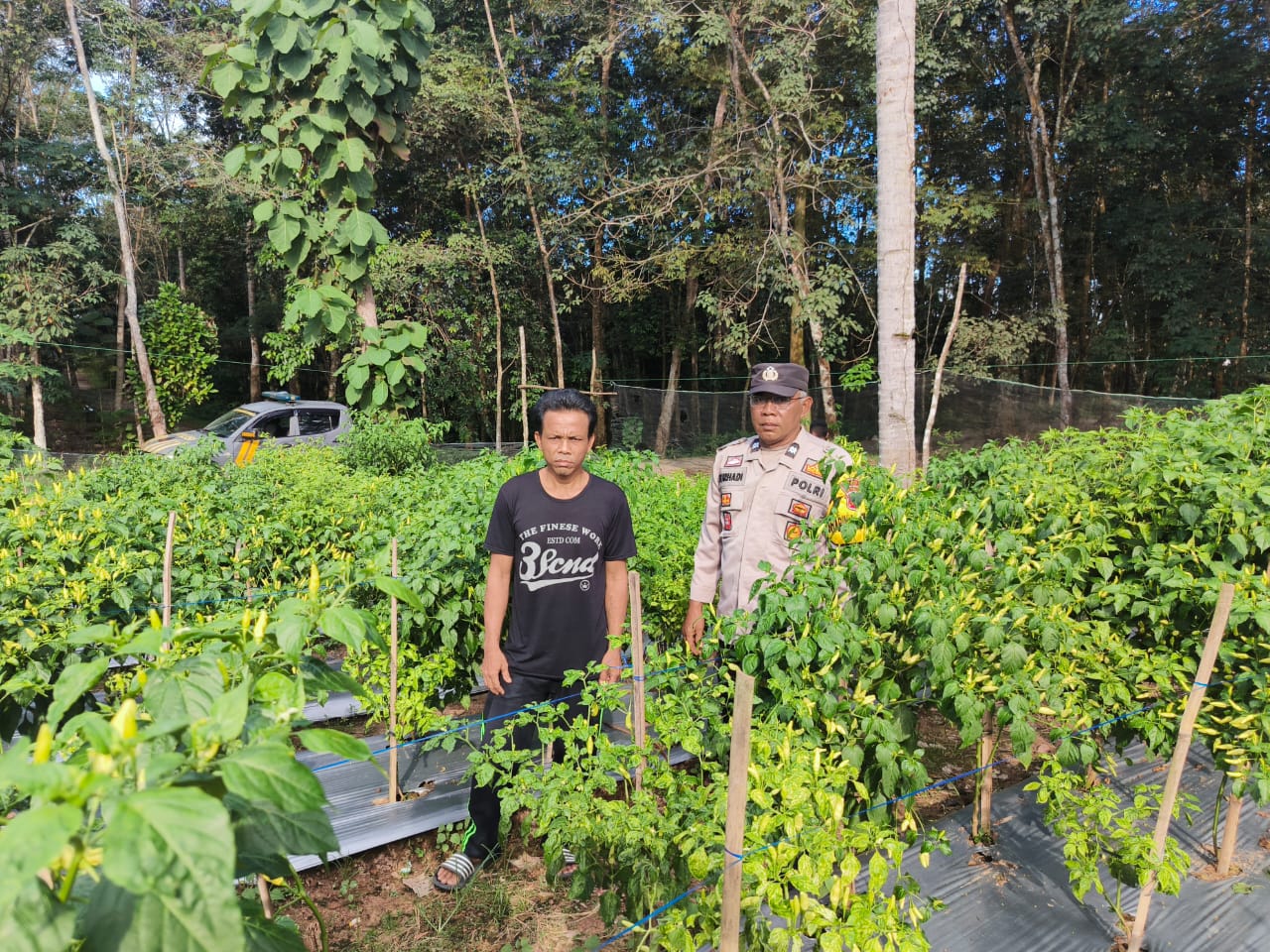 Dalam kunjungannya, Bhabinkamtibmas berdialog langsung kepada pemilik lahan untuk mengetahui proses penanaman, perawatan tanaman, dan perkembangan hasil pertanian.